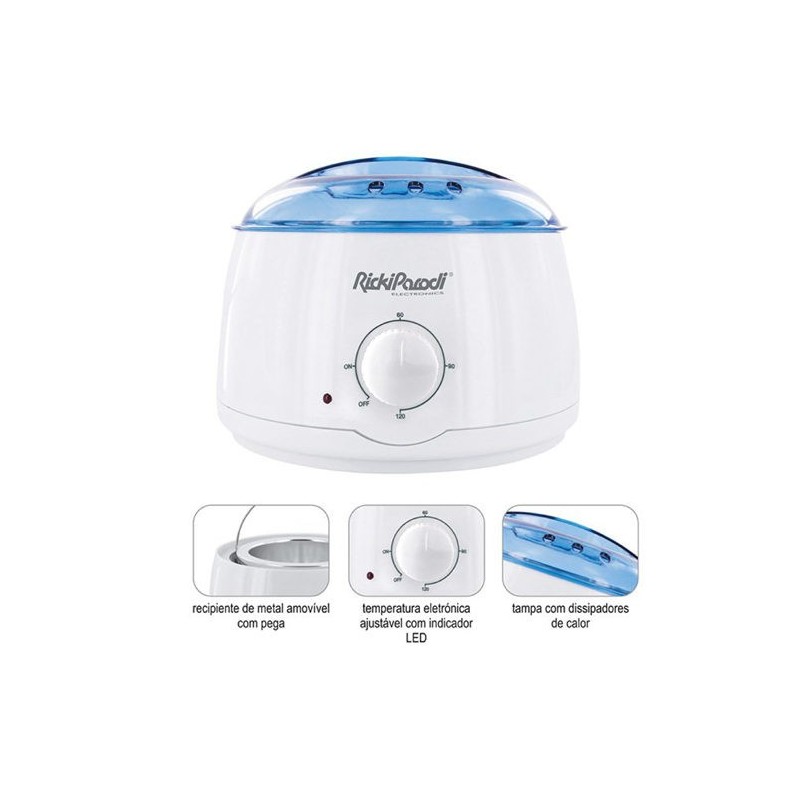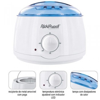 A temperatura é ajustável e controlada eletronicamente. Possui um indicador luminoso para manter a cera á temperatura ideal.